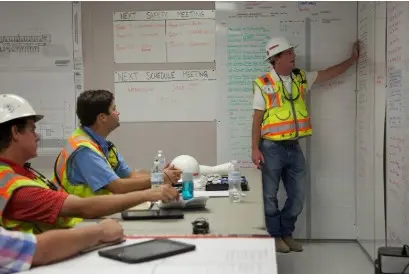- Optional, but usually at weekly progress meetings covering the 3 week look ahead and current activities.